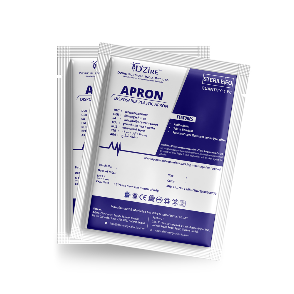 Disposable H.M. Apron available in single E.O Sterile pack in a seat of 25pcs in each LD packet.